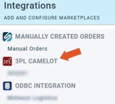 - Select the 3PL Camelot integration from the left-hand side.