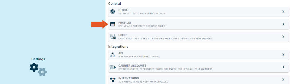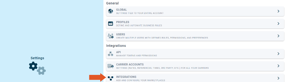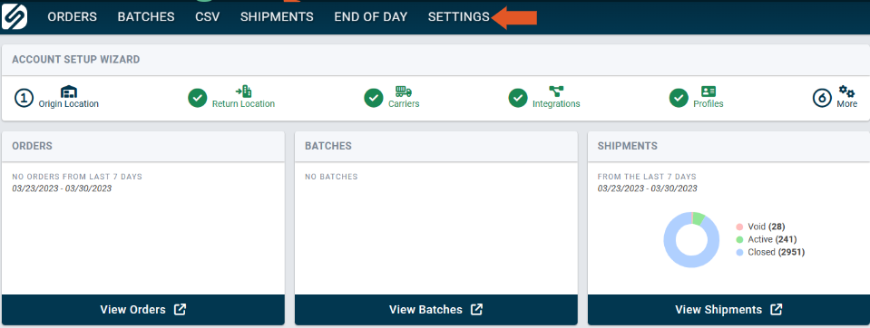 - Select "Settings" in ShipWise cloud.