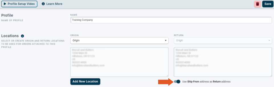 - Toggle to the right to enable "Use order Ship From address as Return Address."