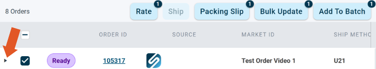 Click the arrow next to the order you want to view to expand the row.