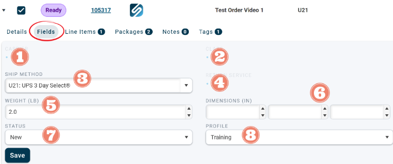 8. Profile being used to ship the order.