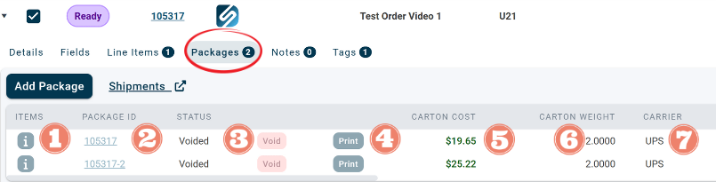 2. Package ID assigned to each box on the order.
