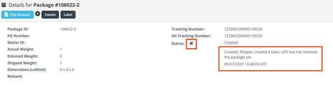 Click on the Airplane icon to retrieve the latest information on the package's transit.